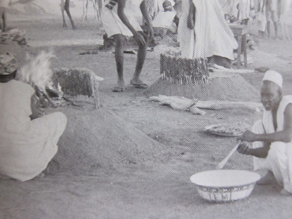 After the austerities of the Sahara, Kano was a culinary high point. The market there offered everything a hungry man craved. Barth relished the street food: “Diminutive morsels of meat, attached to a small stick, were roasting, or rather stewing, in such a way that the fat, trickling down from the richer pieces attached to the top of the stick, basted the lower ones. These dainty bits were sold for a single shell or ‘uri’ each.”