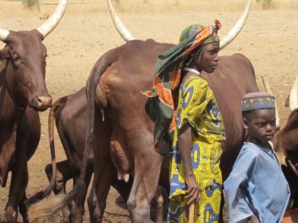 The men were quick and animated. They wore drab dirty clothing, though one of them sported the traditional conical Fulani hat. The women, in brightly patterned robes, carried themselves elegantly amidst the cows and mud. “They would make good wives,” said Nasiru Wada, partly joking. “They work hard, and they would walk to Gashua and never call a cab.”