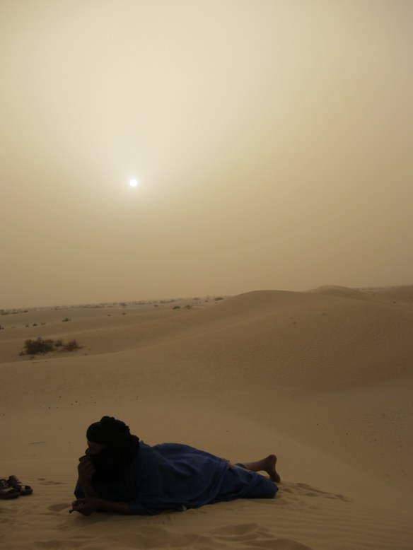 The Sahel endured a horrible drought in the late 1970s and early 1980s (for an excellent account of those times see Thurston Clarke’s The Last Caravan). The drought wiped out the herds of most desert peoples in Mali, Niger, and elsewhere in the Sahel, dealing a crippling blow to an ancient way of life. War followed in the 1990s. Shindouk spent five years in a refugee camp in Mauritania.